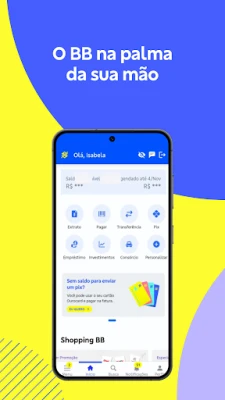 Baixe agora o App BB e tenha acesso a um mundo de vantagens e benefícios. Controle seus cartões, Cofrinho BB, Pix, investimentos e muito mais, tudo no mesmo lugar.
