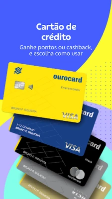 💳 Cartões BB: crédito, débito e muito mais No App BB você tem controle total dos seus cartões. Peça seu cartão de crédito ou débito em poucos cliques e aproveite benefícios exclusivos. Acompanhe limites, faturas, compras em tempo real e faça parcelamentos diretamente pelo App BB.