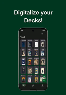 Deck Builder is the ultimate card deck management app for trading card games (TCG), collectible card games (CCG), tarot readings, oracle decks, board games, and tabletop miniatures games. Whether you play Magic: The Gathering, Yu-Gi-Oh!, Pokémon TCG, Flesh and Blood, KeyForge, or use decks for Tarot, Lenormand, or Oracle cards, this app helps you create, organize, shuffle, and draw cards with total control.